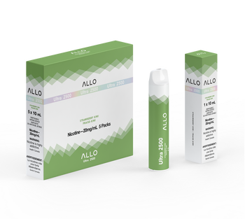 Allo Ultra 2500 Strawberry Kiwi delivers sweet strawberry and tart kiwi flavors for up to 2500 puffs with smooth 20mg salt nicotine satisfaction.