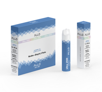 Allo Ultra 2500 Blueberry Ice delivers 2500 puffs of sweet blueberry flavor with refreshing menthol in a convenient disposable design.