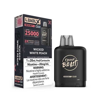 Level X Flavour Beast G2 Boost 25K Pod Wicked White Peach delivers elegant peach flavor with 2X boosted taste and dual coil technology.