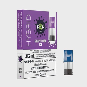 POP Pods Grape Rush Ice delivers sweet grape flavor with cool menthol finish in a convenient 3-pack of 2ml hybrid 20mg pods.