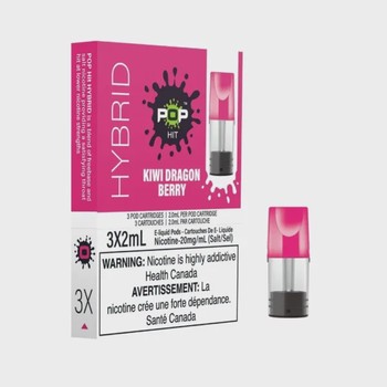 POP Pods Kiwi Dragon Berry delivers sweet-sour fruity menthol with hybrid 20mg nicotine blend in convenient 3-pack format.