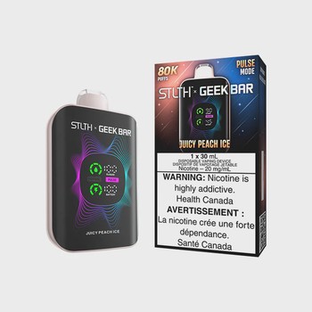 STLTH X GEEK BAR 80K Juicy Peach Ice delivers 80,000 puffs of sweet peach flavor with cooling menthol in one premium disposable device.