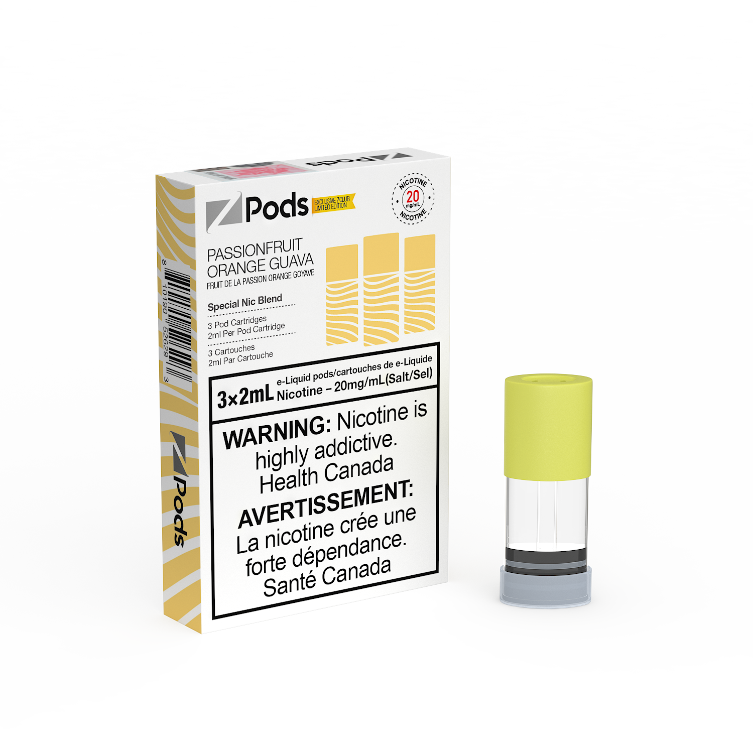 Z Pods Passionfruit Orange Guava delivers tropical paradise with 20mg nicotine salt in convenient 2mL pods for your STLTH device.