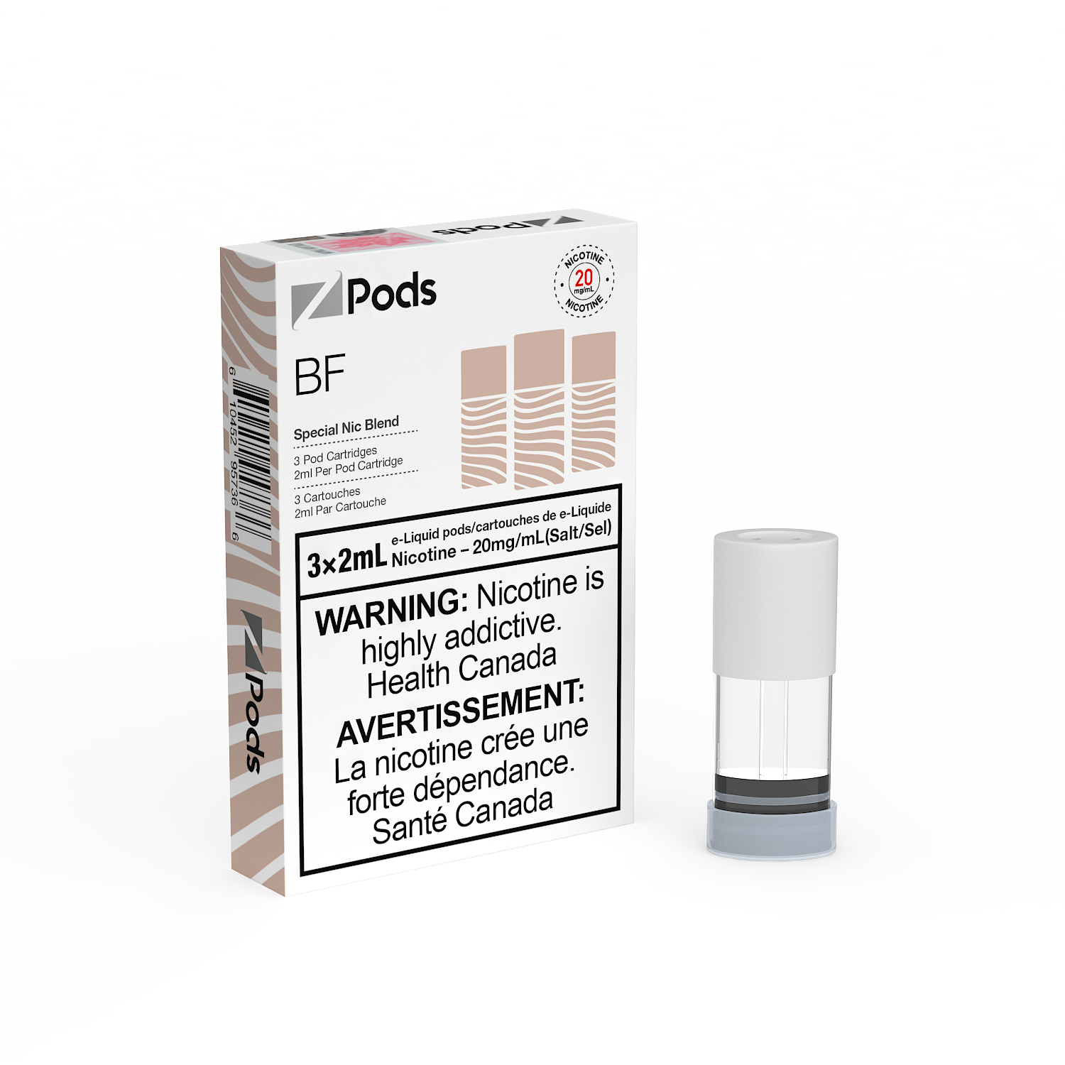 Z Pods BF deliver rich dessert flavors in convenient 2ml pre-filled pods with 20mg salt nicotine and mesh coil technology for consistent taste.