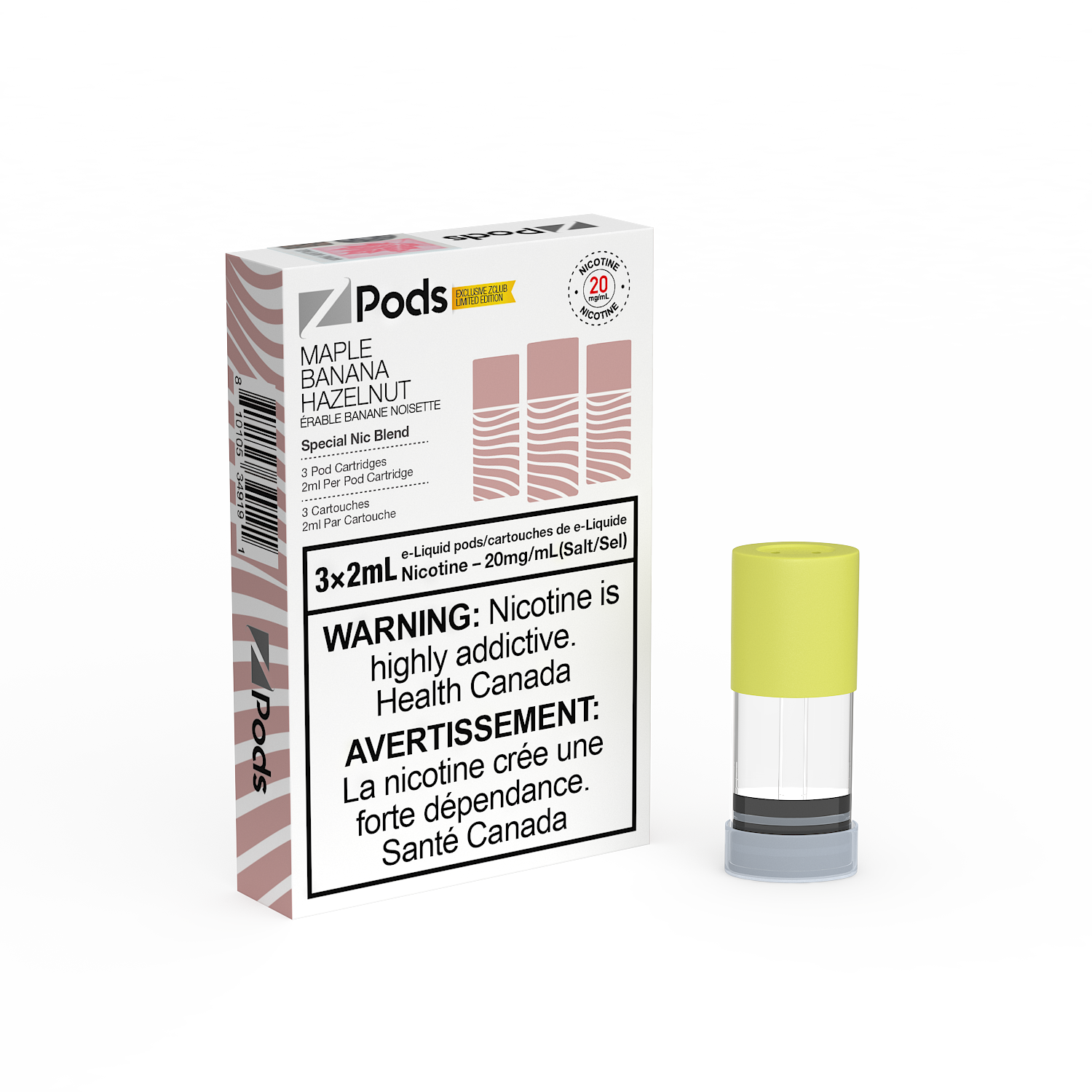 Z Pods Maple Banana Hazelnut delivers rich dessert flavors with 400 puffs per pod and smooth 20mg nicotine salt for STLTH devices.