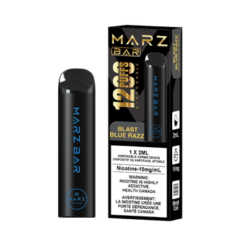 MARZ BAR 1200 Blast Blue Razz delivers 1200 puffs of candy-inspired blue raspberry flavor in a convenient draw-activated disposable vape.