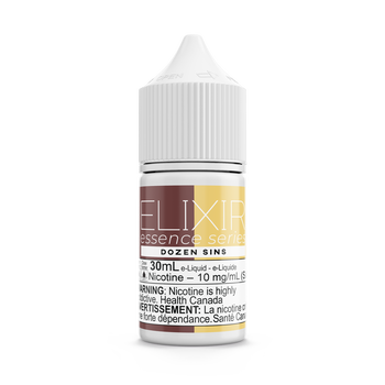 Elixir Essence Series Dozen Sins 30ml Salt delivers decadent dessert flavors with smooth salt nicotine perfect for pod systems and MTL vaping.